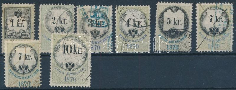 Leírás: 1870 Osztrák illetékbélyeg összeállítás 8 db