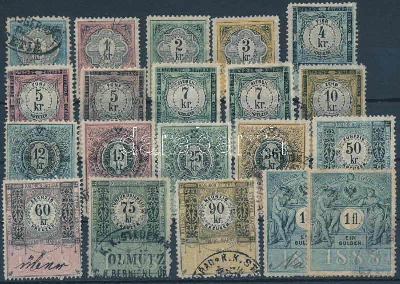Leírás: 1888 Osztrák illetékbélyeg összeállítás 20 db