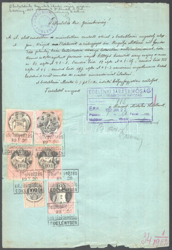 Leírás: 1889 Okmányrészlet 37 Ft 60 kr illeték lerovással