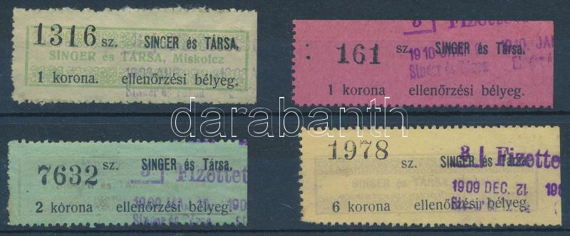 Leírás: 1908 Singer és Társa ellenőrzési jegy 4 érték