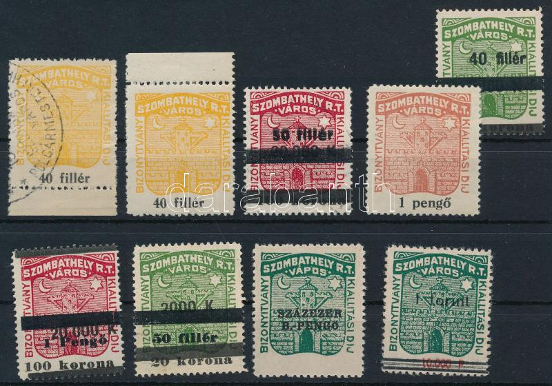 Leírás: 9 db Szombathely városi illetékbélyeg (34.000)