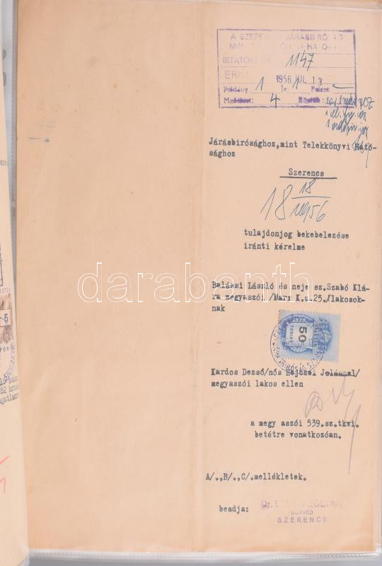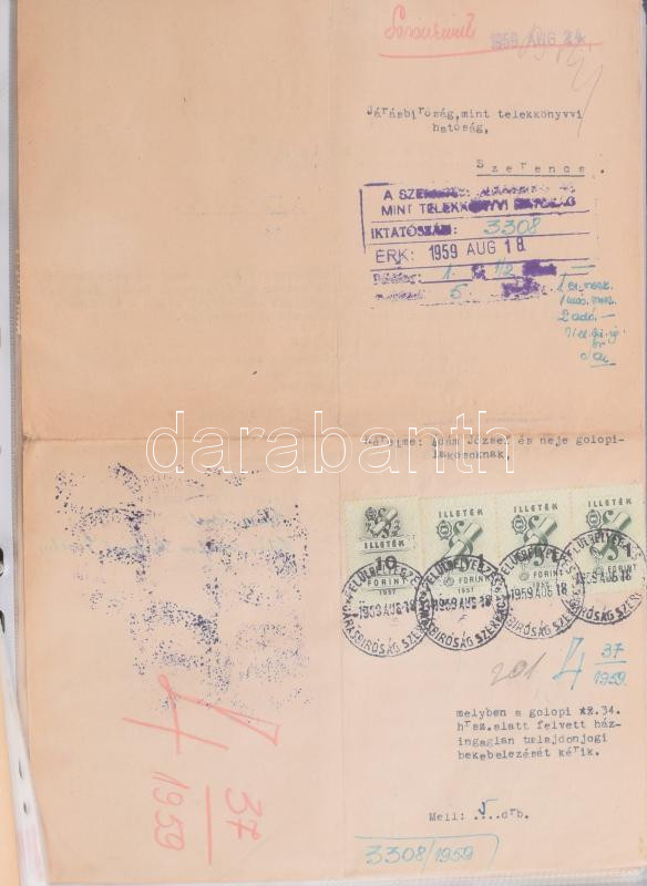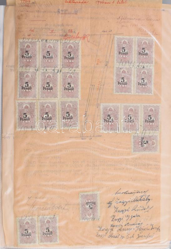Közel 200 darabos okmánybélyeges okmány gyűjtemény Tokaj, Szerencs, Miskolc környékéről, nagyrészt 1945-1960 közötti bírósági és hivatalos iratok, köztársasági, Rákosi- és Kádár-korszakbeli illetékbélyegekkel. Közötte néhány II. világháború előtti. Gyűrűs berakóban