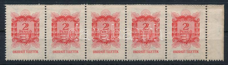 Leírás: Okirati illetékbélyeg 2P ötöscsík
