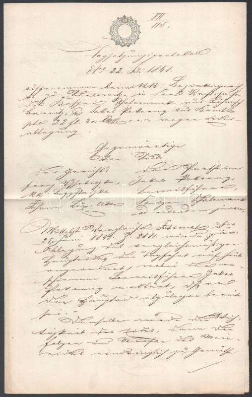 Leírás: cca 1850 7 db szignettás okmány: jegyzőkönyvek, adóslevél, stb