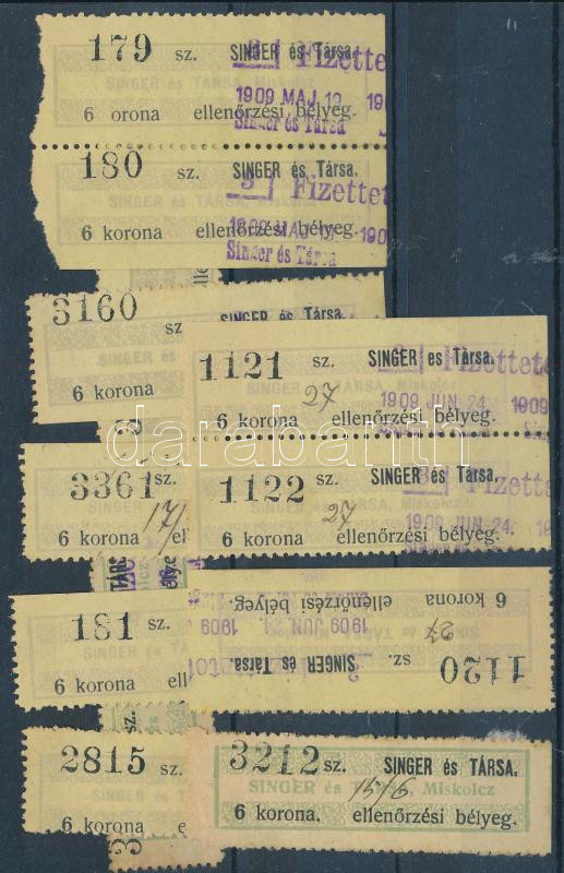 Leírás: 1909 Singer és társa ellenőrzési bélyeg 6K össz 14 db