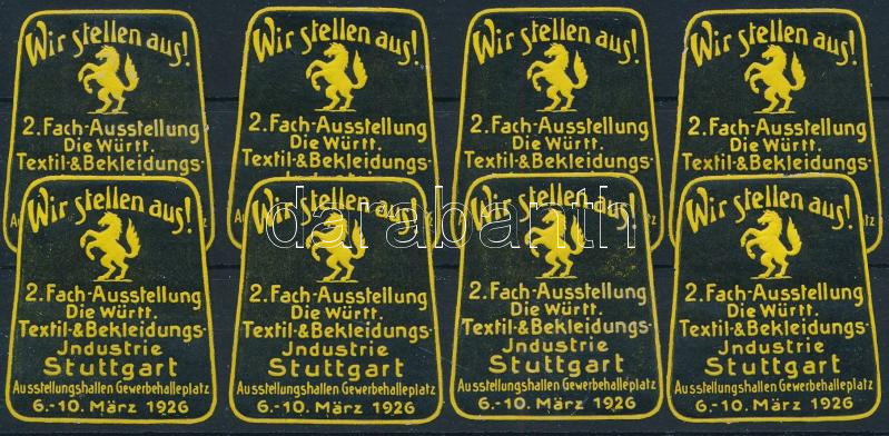 1926 2. Textil- és ruhaipari szakkiállítás Stuttgart, Württemberg levé... https://www.darabanth.com/hu/472-Gyorsarveres/472.0/Magyar-filatelia-es-postatortenet/Parafilatelia~1000019/1926-2-Textil-es-ruhaipari-szakkiallitas-Stuttgart-Wurttemberg-levelzaro-tetel-stecklapo~II3197294