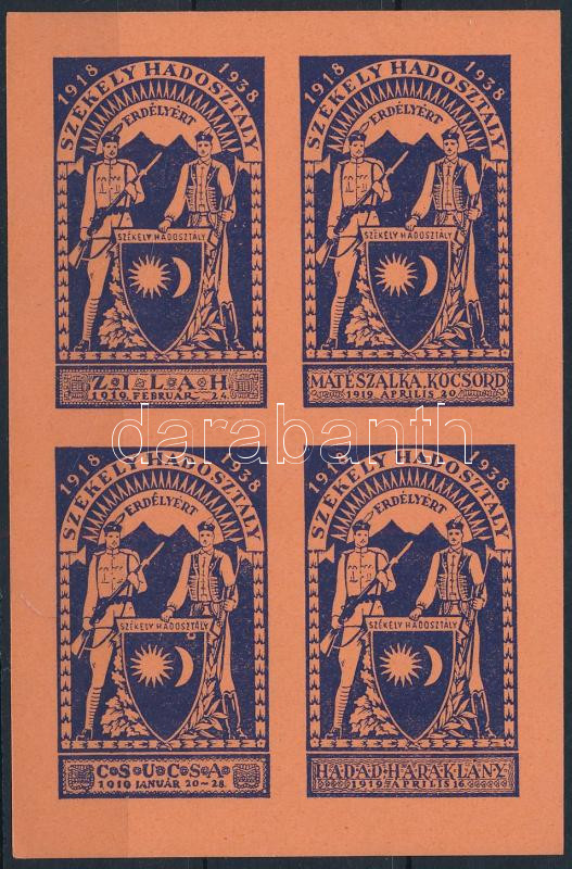 1938 Székely hadosztály levélzáró vágott kisív https://www.darabanth.com/hu/472-Gyorsarveres/472.0/Magyar-filatelia-es-postatortenet/Parafilatelia~1000019/1938-Szekely-hadosztaly-levelzaro-vagott-kisiv~II3190004