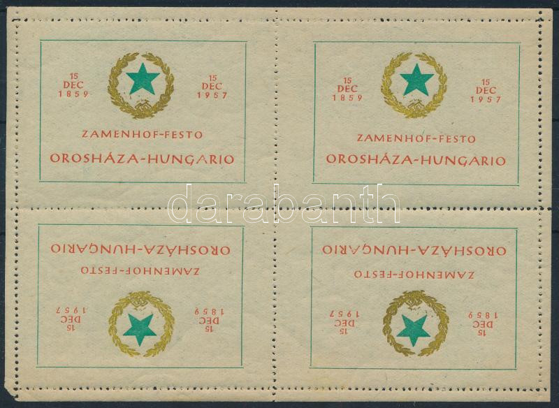 Leírás: 1957 Eszperantó levélzáró négyestömb Zamenhof fest Orosháza
