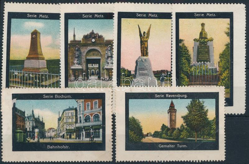 Leírás: Régi német városképes (Metz, Bochum, Ravensburg) levélzáró tétel stecklapon.