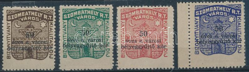 Leírás: Szombathely városi illetékbélyeg sor "50 éves a városi bélyeggyűjtő kör" felülnyomással