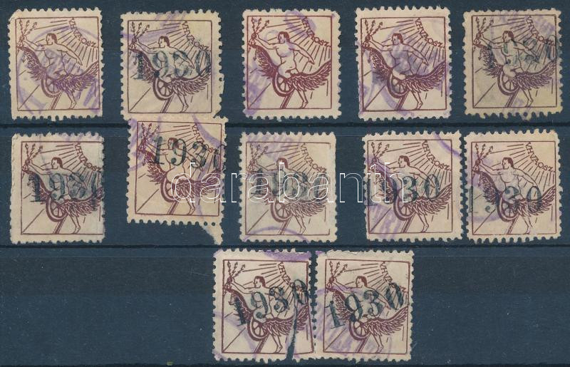 Leírás: cca 1930 12 db Villamos és Helyiérdekű Vasúti Alkalmazottak Országos Szövetsége tagdíjbélyeg