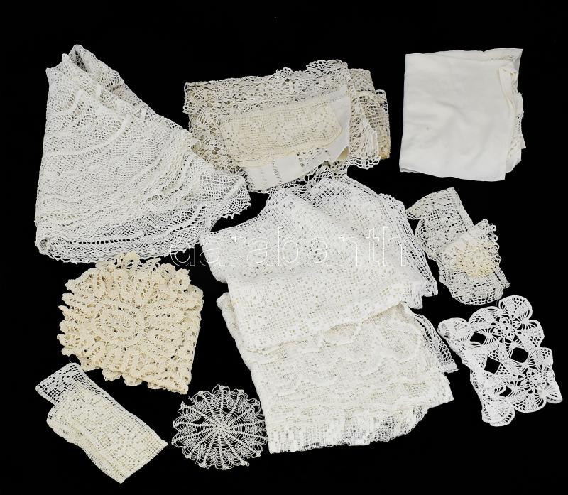 Leírás: 10 db kézimunka terítő: horgolt, csipke, hímzett, kör és négyszög alak nagy méretig d: 80 cm-ig