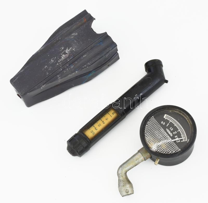 Leírás: 2 db régi keréknyomásmérő, egyik jelzett tokban
