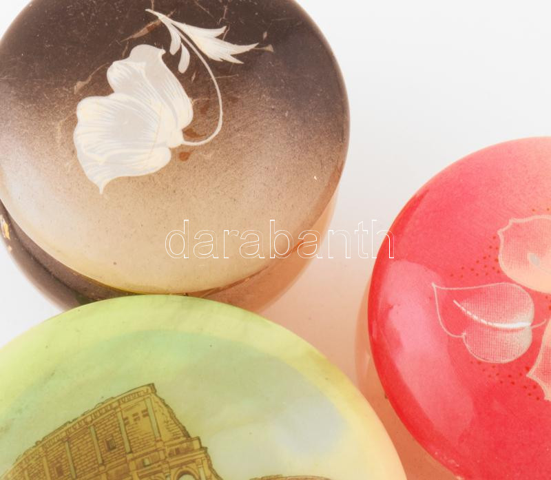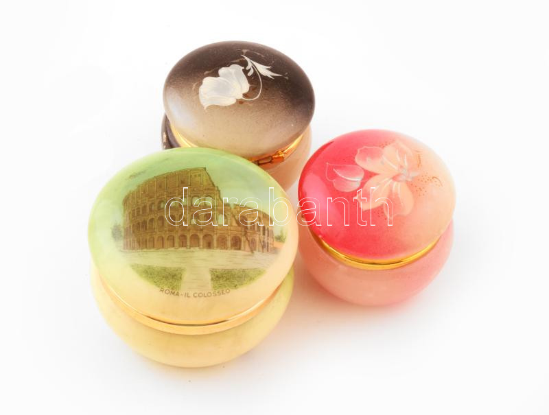 Leírás: 3 darab gyűrűtartó dobozka, kis kopással, d: 6,5 cm