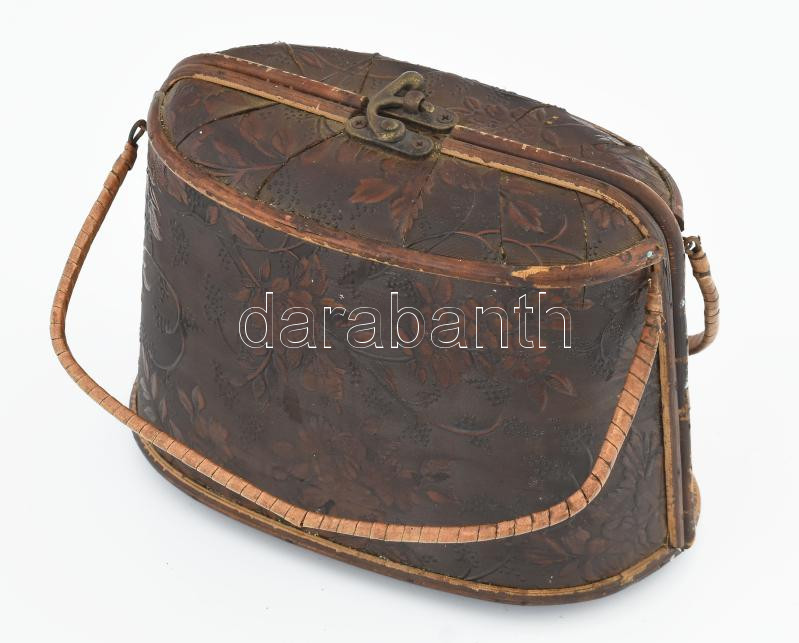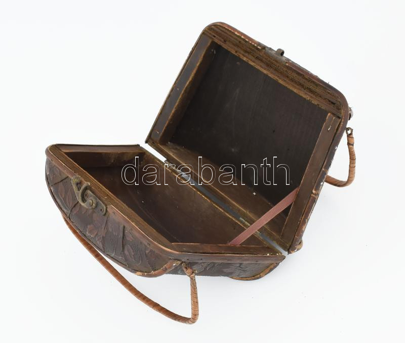 Antik fa táska, kopott, 20x15 cm