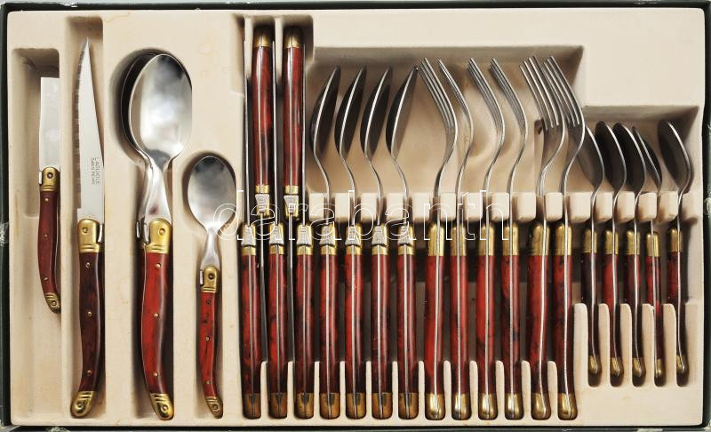 Francia Laguiole evőeszköz készlet 4x6 db műanyag nyéllel, dobozában, ... https://www.darabanth.com/hu/472-Gyorsarveres/472.0/Mutargy-papirregiseg-egyeb/Bolhapiac~1000015/Francia-Laguiole-evoeszkoz-keszlet-4x6-db-muanyag-nyellel-dobozaban-ujszeru-allapotban~II3149510