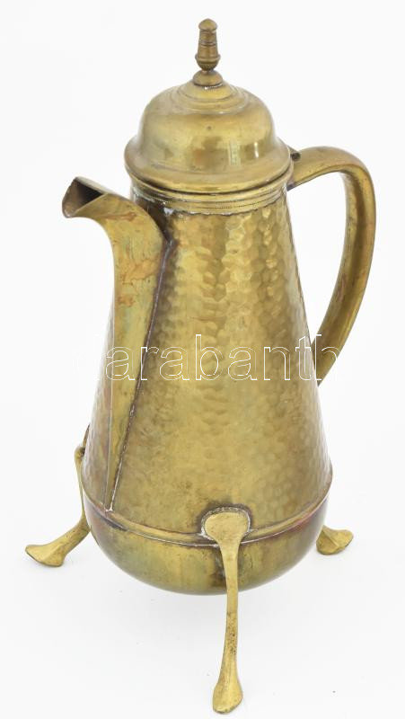 Leírás: Szecessziós háromlábú kiöntő, réz, jelzett, m: 24 cm