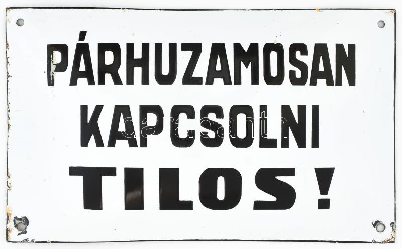 Zománcozott jelzőtábla, "Párhuzamosan kapcsolni tilos!" feli... https://www.darabanth.com/hu/472-Gyorsarveres/472.0/Mutargy-papirregiseg-egyeb/Bolhapiac~1000015/Zomancozott-jelzotabla-Parhuzamosan-kapcsolni-tilos-felirattal-kis-serulesekkel-15x25-c~II3182530