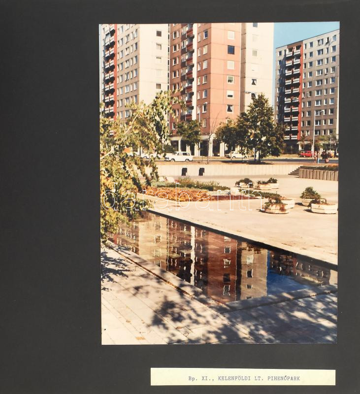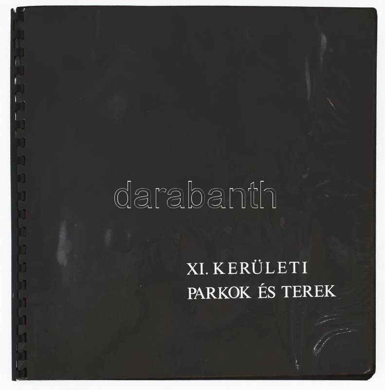 1986 Bp., XI. kerületi parkok és terek, Fővárosi Kertészeti Vállalat fotoarchivuma, fényképezte: Mészáros András, összeáll.: Kecskés Tiborné. Album 22 db színes fotóval, spirálfűzött, kissé sérült, egy kép különvált az albumlaptól, 30x30 cm