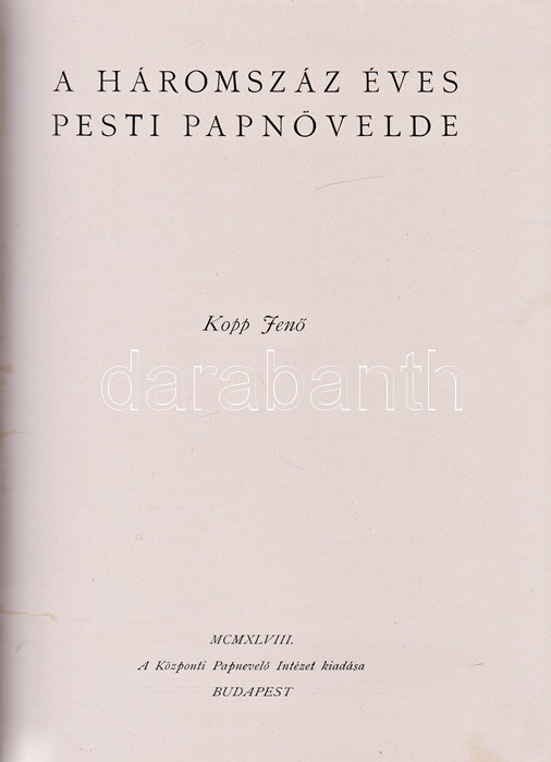 https://www.darabanth.com/hu/472-Gyorsarveres/472.0/Mutargy-papirregiseg-egyeb/Budapest-150~500015/Kopp-Jeno-A-haromszaz-eves-pesti-Papnovelde-Budapest-1948-Kozponti-Papnevelo-Intezet-~II3130231