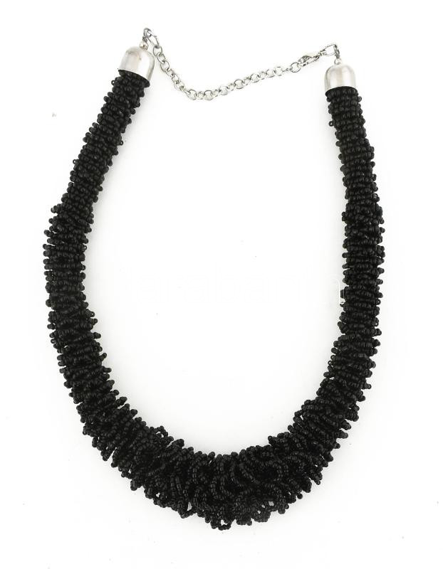 Leírás: Fekete fűzött nyakék, h: 46 cm