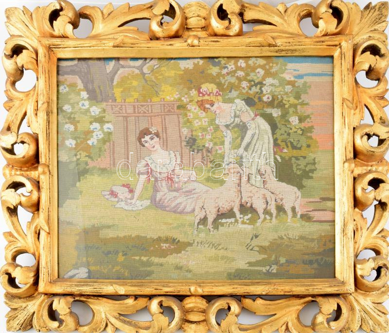 Leírás: Üvegezett, dekoratív florentin stílusú fa képkeret szövetképpel, belső méret: 40x50 cm