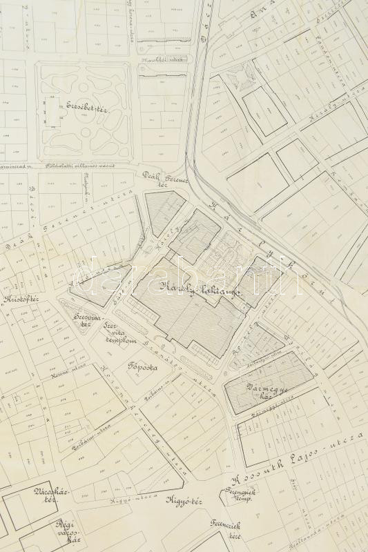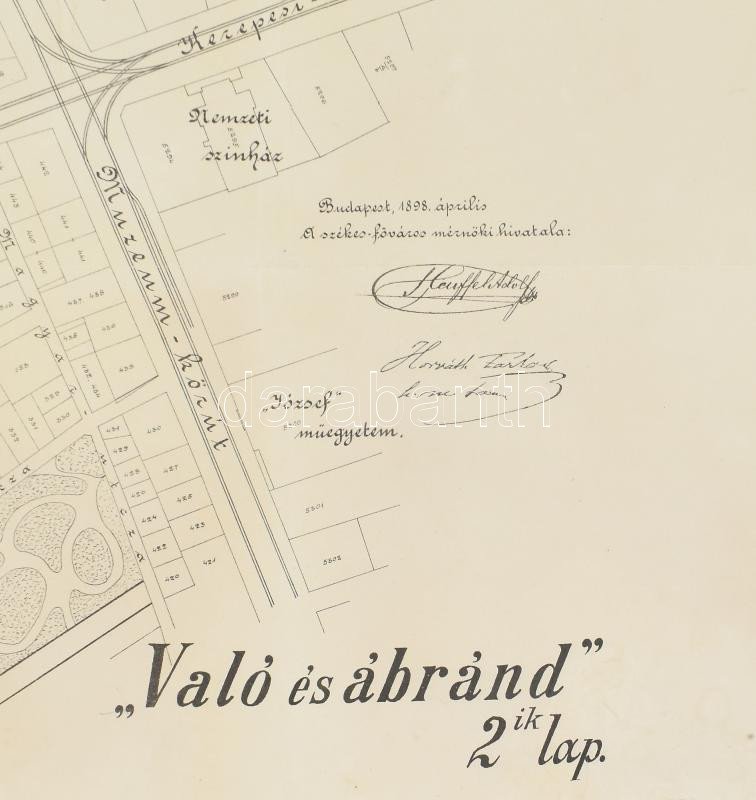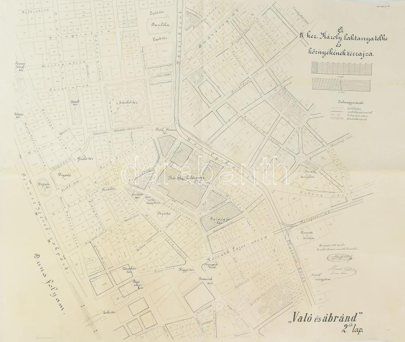 Leírás: 1898 Bp., A IV. kerület Károly laktanya telke és környékének térrajza, , "Való és ábránd" 2.lap, restaurált, 80×100 cm