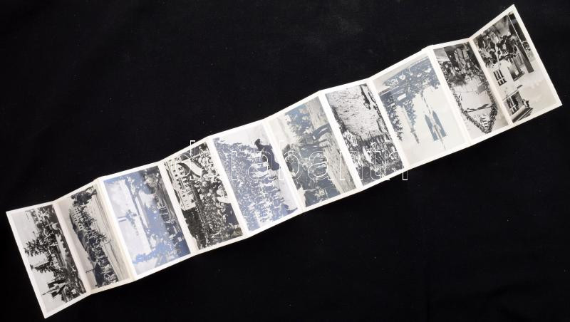 Leírás: 1938 Ipolyság, a Felvidék felszabadulásának örömünnepei, 12 db fotót tartalmazó leporelló, Dr. Sárai Imre rotációs fénykép-sokszorosító, 6×8,5 cm