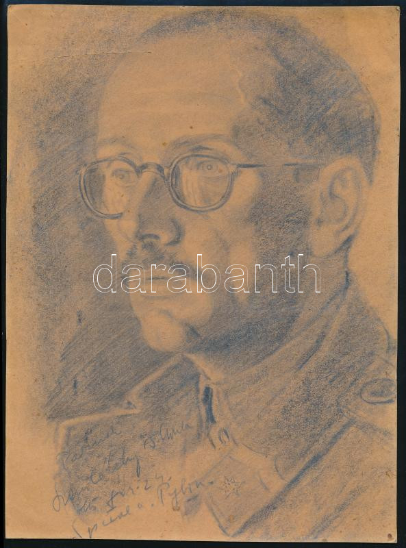 Leírás: II. világháborús katona portré (Szenteleky B. Gyula?), 1945.II.24. Ceruza, karton, jelzés nélkül (?), 27x20 cm