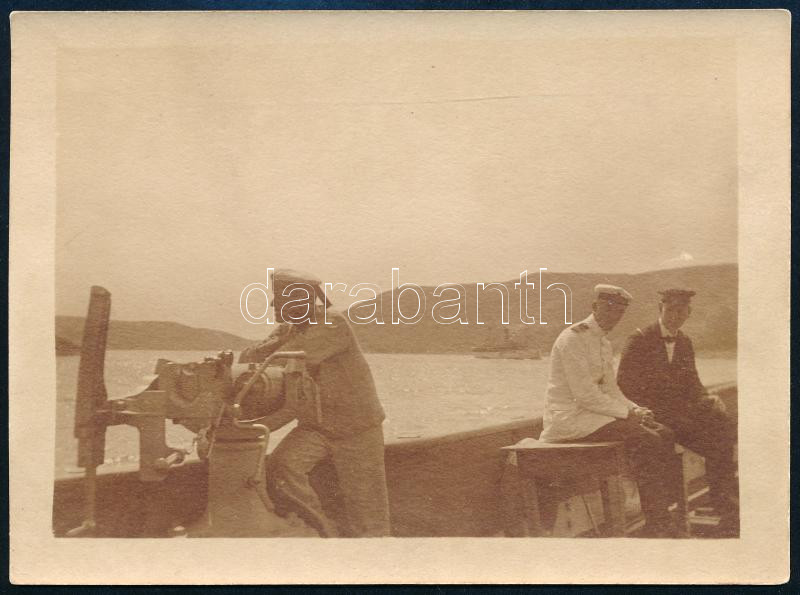 cca 1916 S.M.S. Satellit (1883-1920) torpedó romboló hadihajó fedélzete. Feliratozott fotó 9x12 cm / S.M.S. Satellit torpedo gunboat marines on the deck 12x9 cm