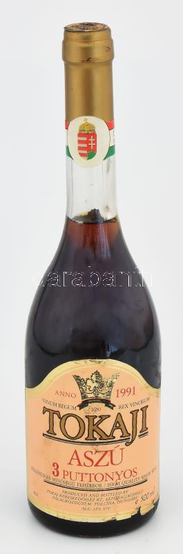 Tokaji aszú. 1991, 3 puttonyos, 0,5l, Tolcsva, bontatlan. https://www.darabanth.com/hu/472-Gyorsarveres/472.0/Mutargy-papirregiseg-egyeb/Muzealis-borok-italok~1000025/Tokaji-aszu-1991-3-puttonyos-0-5l-Tolcsva-bontatlan~II3182351