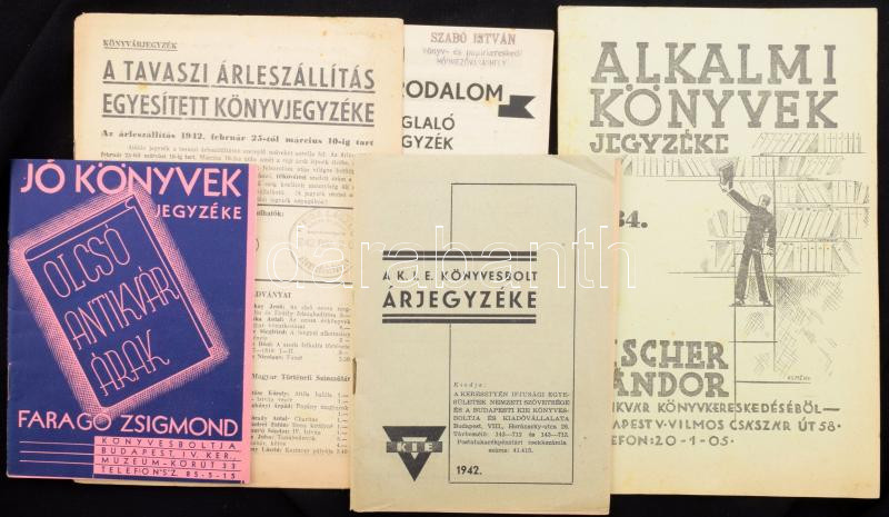 Leírás: 1934-1942, 5 darab könyvesbolti könyvjegyzék