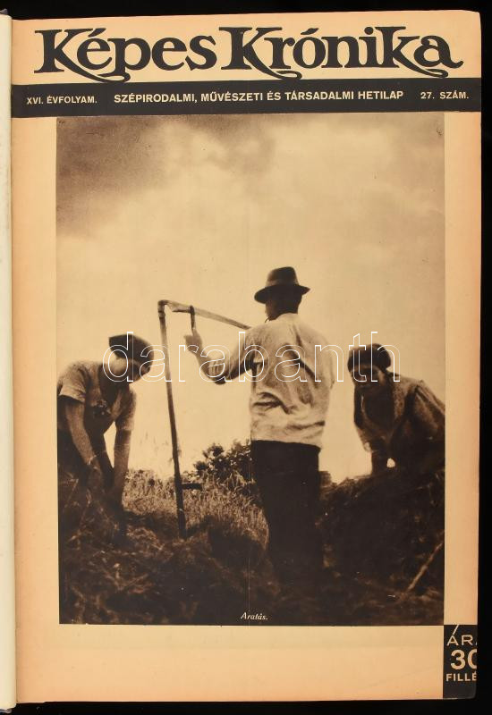 1934 Képes Krónika XVI. évf. 27-52. szám. 1934. VII. 1 - XII. 30. Fekete-fehér képanyaggal illusztrált. Átkötött félvászon-kötésben, kopott borítóval, néhány lapon kivágással.