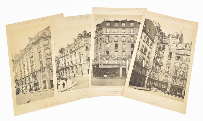 cca 1910-1920 L'architecture moderne a Paris / Párizsi épületek a századfordulóról, 4 db nagyméretű nyomat, változó állapotban, 36x24 cm és 40x25 cm között
