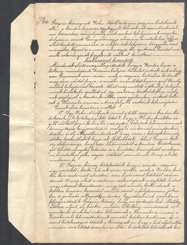 Leírás: 1880 Fekete Márton Csongrád megyei főjegyző kézzel írt határozata