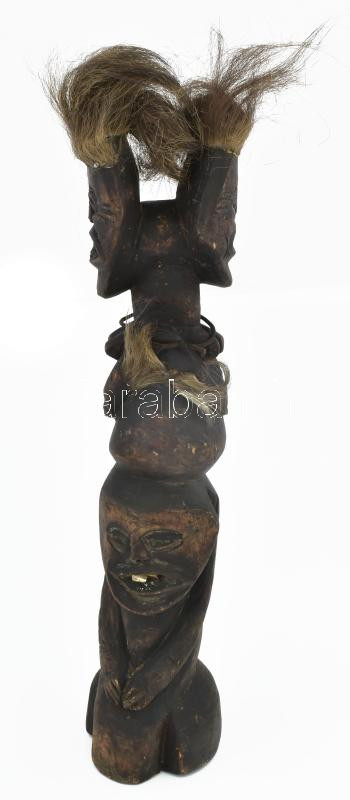 Leírás: Afrikai szobor, arcokkal, hajjal. Sérüléssel, m: 45 cm