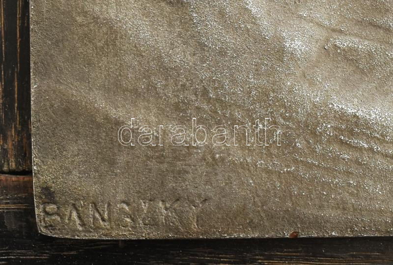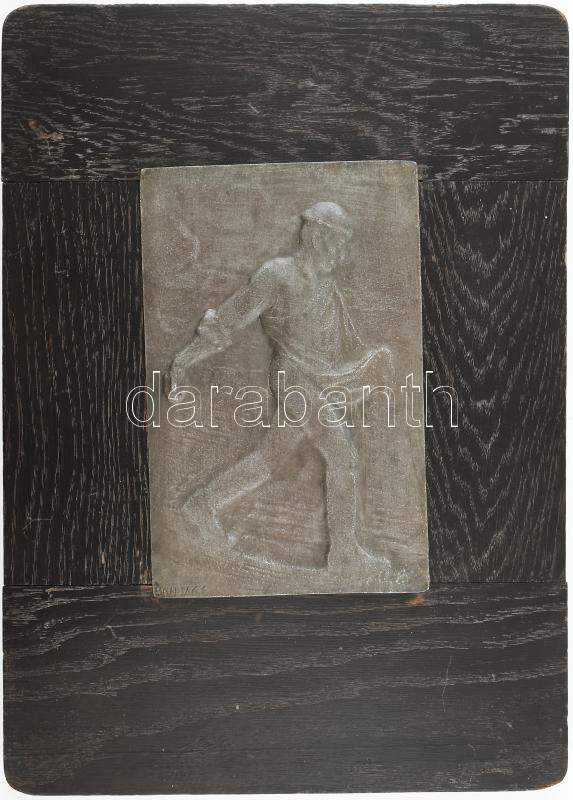 Leírás: Bánszky Sándor (1888-1918): Veteményező férfi. Fém plakett, fa lapon, jelzéssel, szép állapotban, 21x13 cm, 39x28 cm