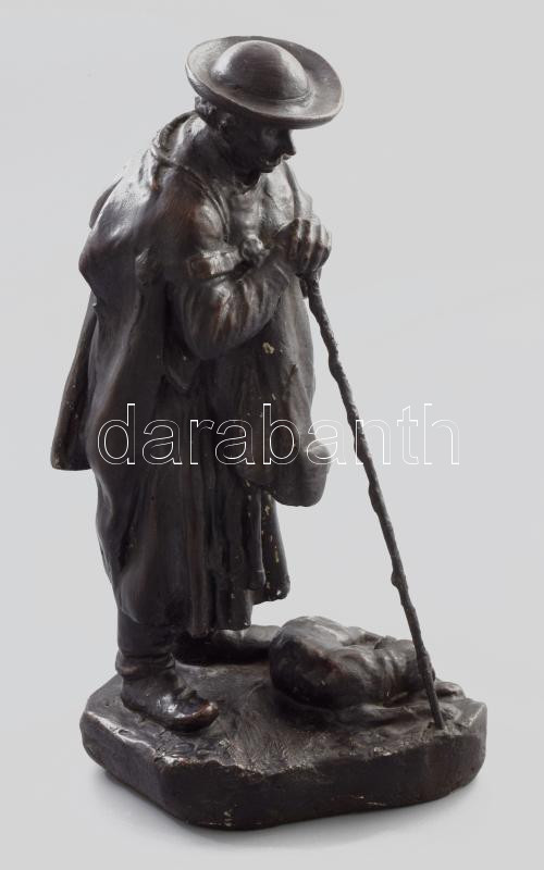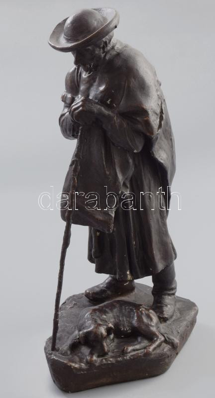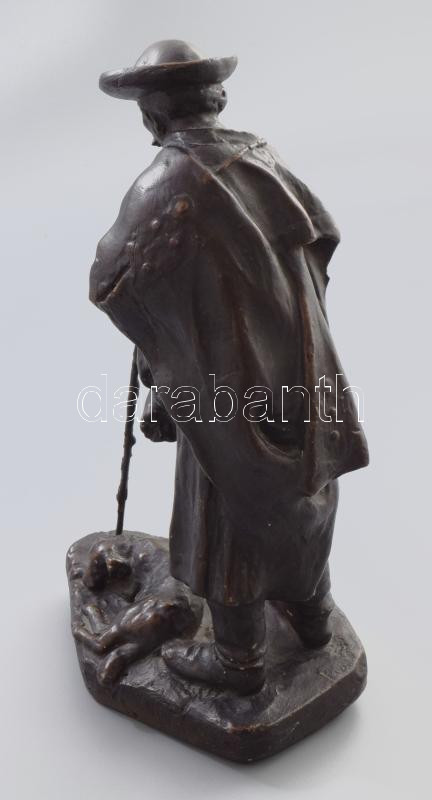 Beszédes János László (1874- 1922): Botján támaszkodó juhász. Hidegen festett gipsz, jelzés nélkül, (eredetileg tikettel jelzett volt), kopással, m: 35,5 cm /// SZEMÉLYES ÁTVÉTEL, NEM POSTÁZZUK / ONLY PERSONAL COLLECTION IN OUR OFFICE!