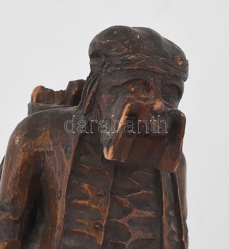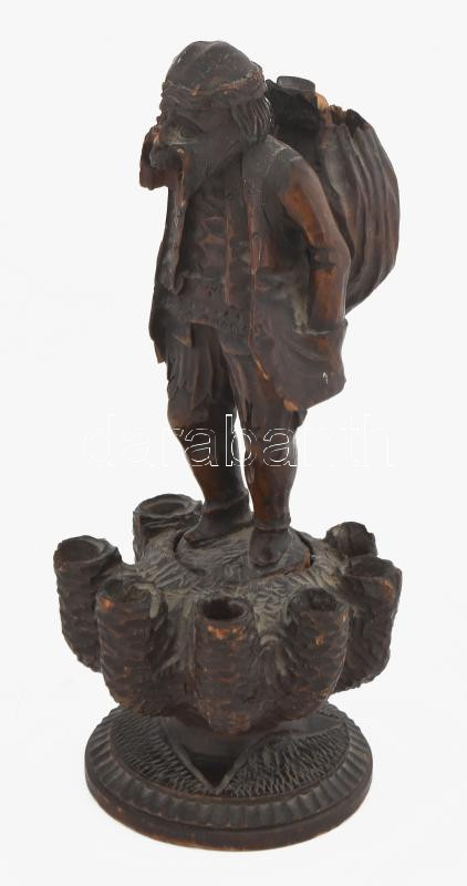 Leírás: Kínáló .Faragott fa szobor. XIX.sz. vége, sérülésekkel m: 23 cm