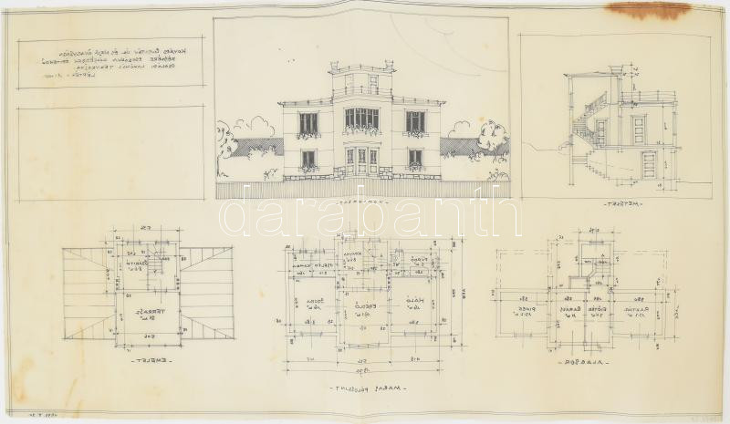 Leírás: cca 1910 Csobánka, családi ház tervrajza. Kézzel rajzolt 60x36 cm
