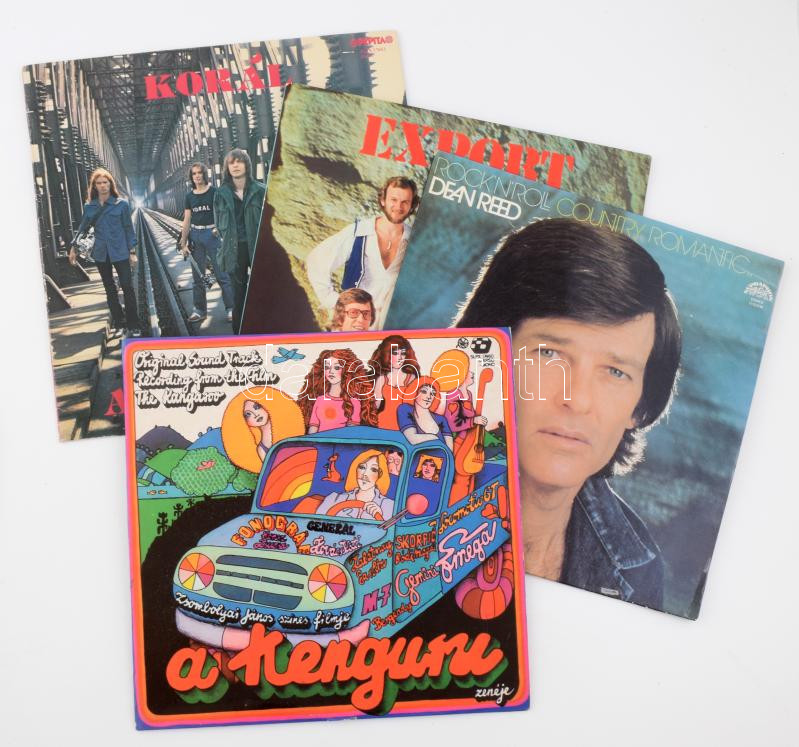 Leírás: 4 darab bakelit: Korál - A túlsó part, The Vikings - Export, Dean Reed - Rock'n'Roll Country Romantic..., A Kenguru zenéje.