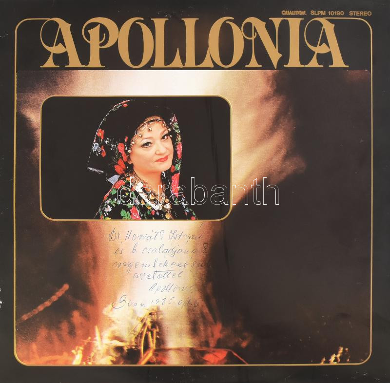 Apollonia: Újabb cigánydalok LP Vinyl 1984 Qualiton. G. Aláírással. https://www.darabanth.com/hu/472-Gyorsarveres/472.0/Mutargy-papirregiseg-egyeb/Zenei-bakelit-lemezek-CD-k-DVD-k~500012/Apollonia-Ujabb-ciganydalok-LP-Vinyl-1984-Qualiton-G-Alairassal~II3178070
