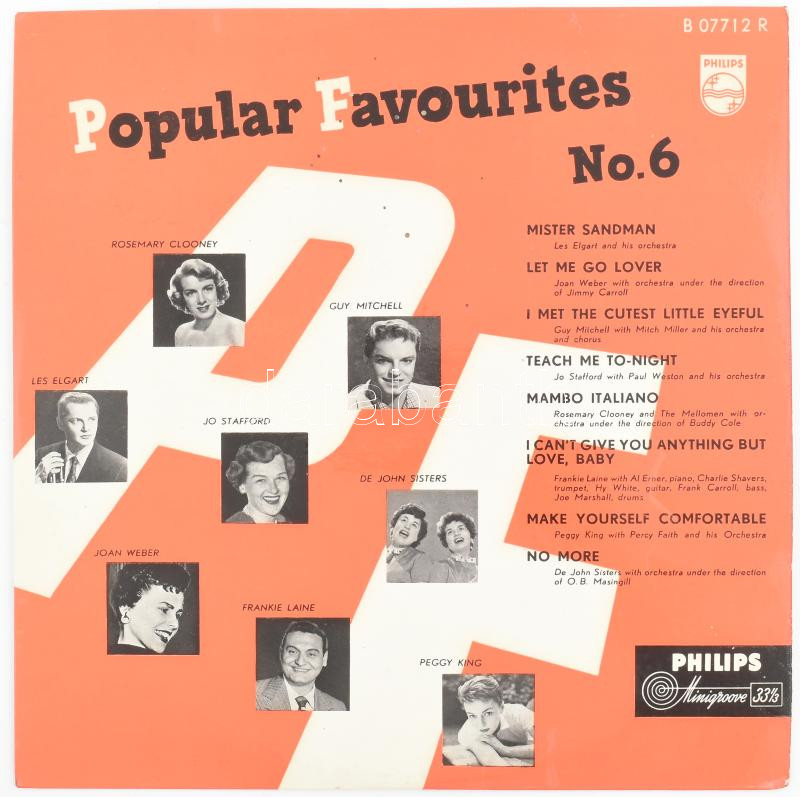 Leírás: Various - Popular Favourites No. 6, Vinyl, LP, 10", Compilation közepes méretű lemez, Hollandia (VG+, a lemez enyhén kopott)