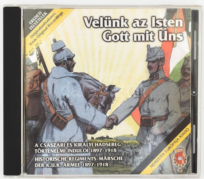 Velünk az Isten. A császári és királyi hadsereg történelmi indulói 189... https://www.darabanth.com/hu/472-Gyorsarveres/472.0/Mutargy-papirregiseg-egyeb/Zenei-bakelit-lemezek-CD-k-DVD-k~500012/Velunk-az-Isten-A-csaszari-es-kiralyi-hadsereg-tortenelmi-induloi-1897-1918-CD~II3198783