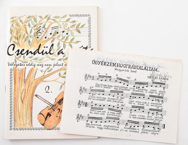 Leírás: Hendi János (1903-1995) két dedikált fénymásolt kottája. + Csendül a nóta 2. kottafüzet
