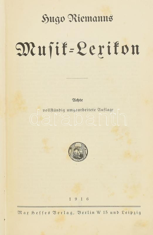 Hugo Riemanns Musik-Lexikon. Berlin és Lipcse, 1916, Max Hesse. Nyolcadik, teljesen átdolgozott kiadás. Német nyelven. Kiadói aranyozott gerincű félbőrkötésben, kissé sérült borítóval, néhány lap kissé foltos.