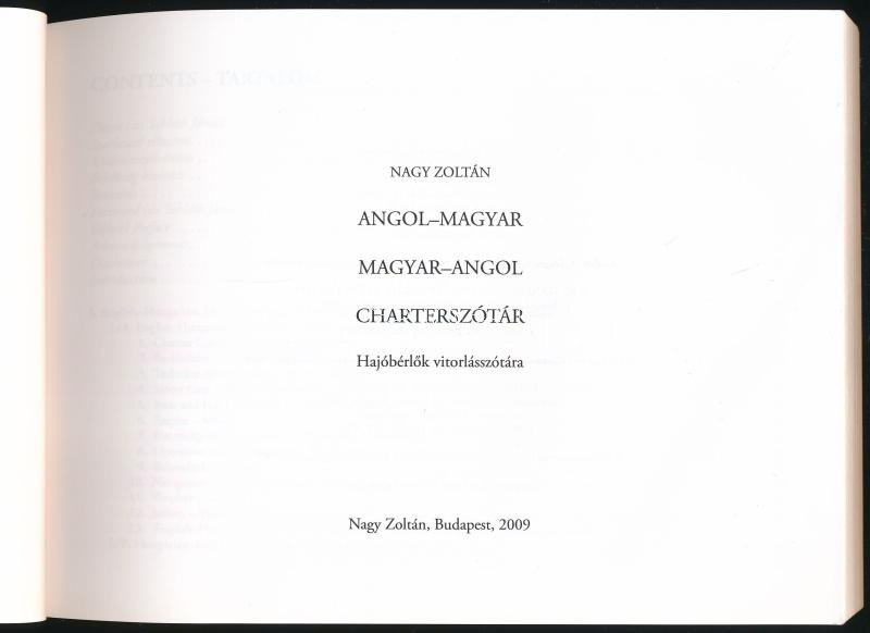 Nagy Zoltán: Angol-Magyar - Magyar-Angol charterszótár. Hajóbérlők vit... https://www.darabanth.com/hu/472-Gyorsarveres/472.0/Mutargy-papirregiseg-egyeb/c~1/Nagy-Zoltan-Angol-Magyar-Magyar-Angol-charterszotar-Hajoberlok-vitorlasszotara-Bp-20~II3152679