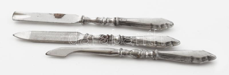 Leírás: 3 darab ezüst (Ag) nyelű manikűrös szerszám, jelzett, bruttó: 8,5g