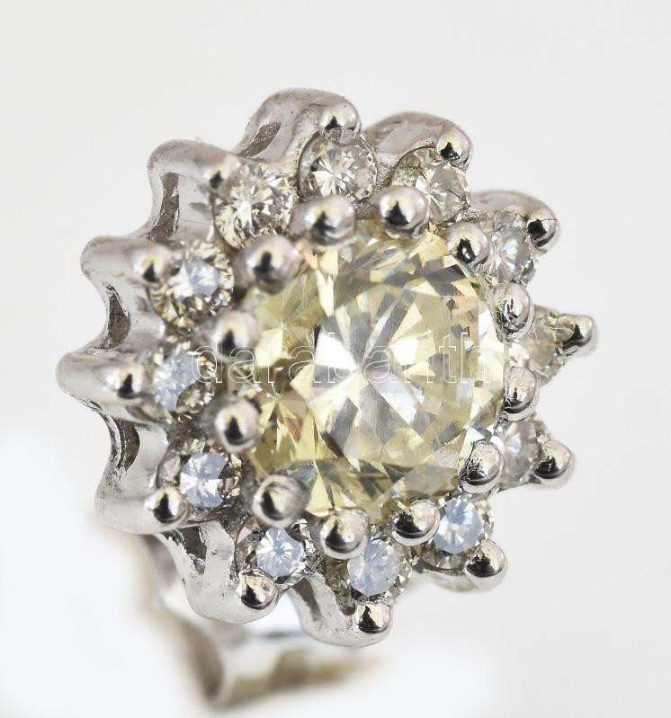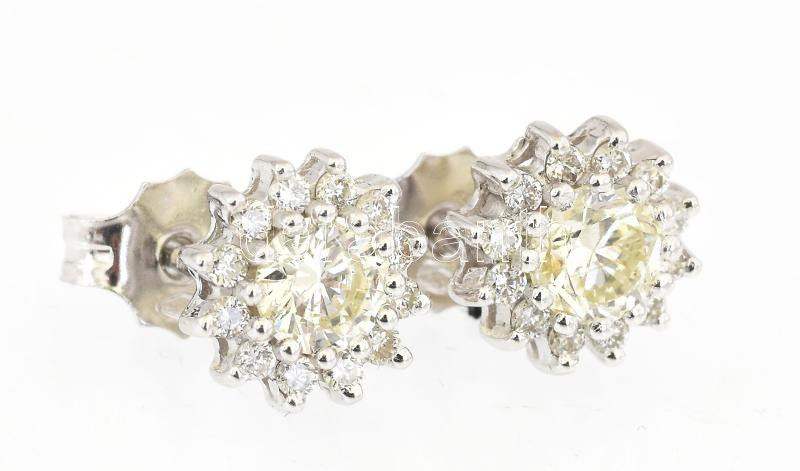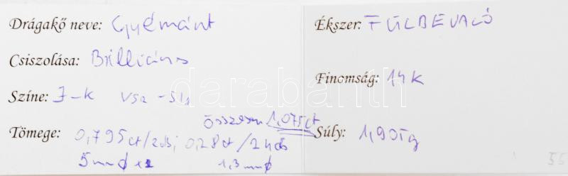 Leírás: Arany (Au) 14K fülbevalópár, gyémántokkal, briliáns csiszolás, jelzett, összesen: 1,075 ct, bruttó: 1,905 g