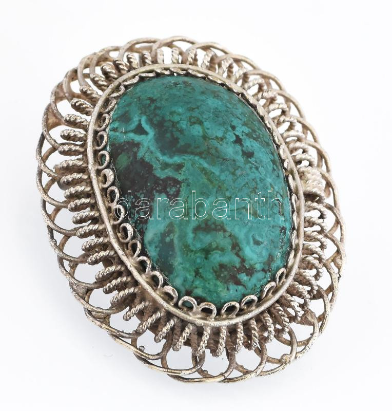 Leírás: Ezüst (Ag) bross, malachittal, jelzett, bruttó: 12,5 g
